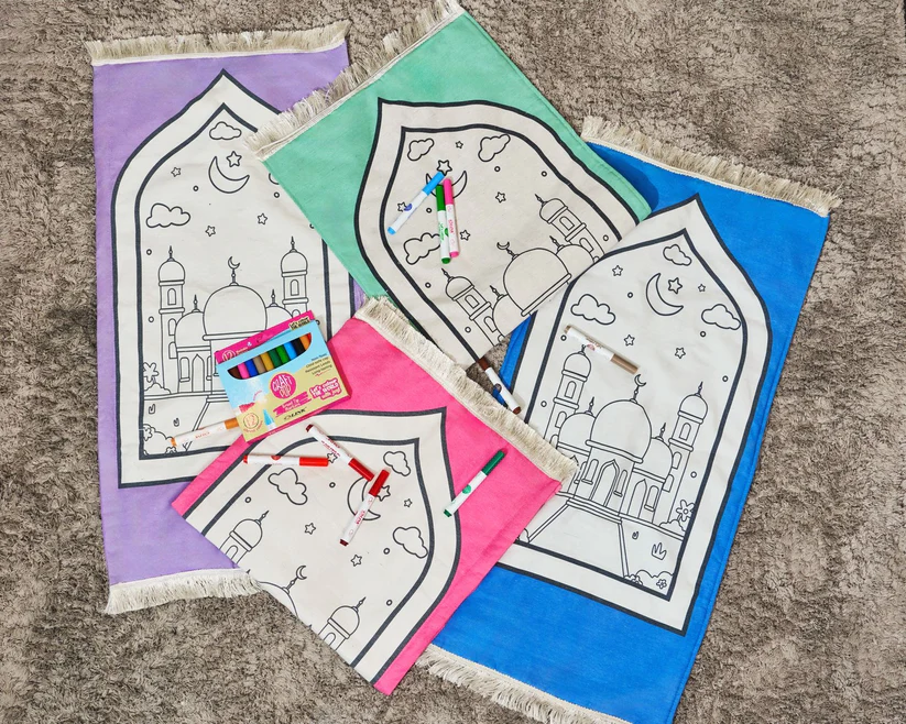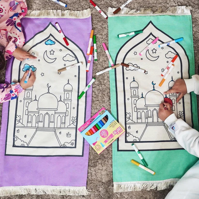 A special prayer mat comes with 12 washable colors. to have fun and encourages them for pray.