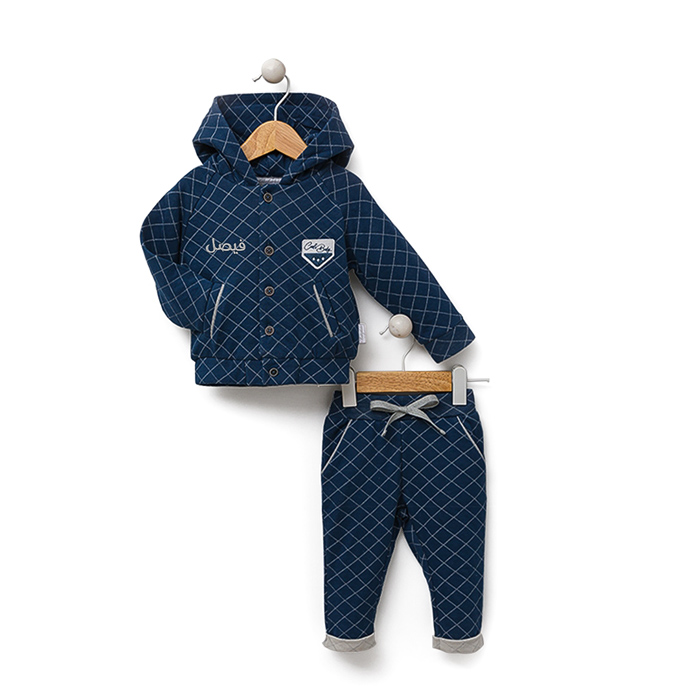 Personalized training suit set for Babies .. Available in 5 different sizes starting from 3 to 36 moths in 2 colors Grey and Navy Blue