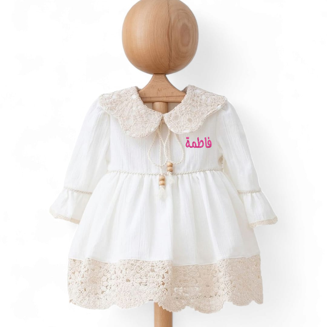 Personalized dress suitable for any occasion , made of light and stylish dantel touch. Available from 6 months up to 2 years.