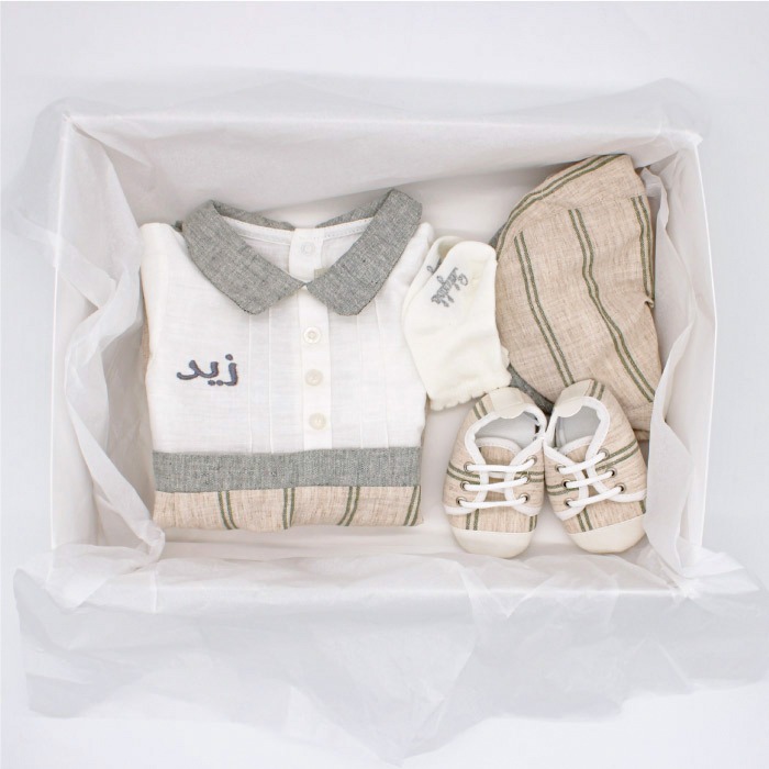 Special personalized gift set for new born baby boy , with lovely design, unique and elegant. contains 4 items. from 3mto 12 months.