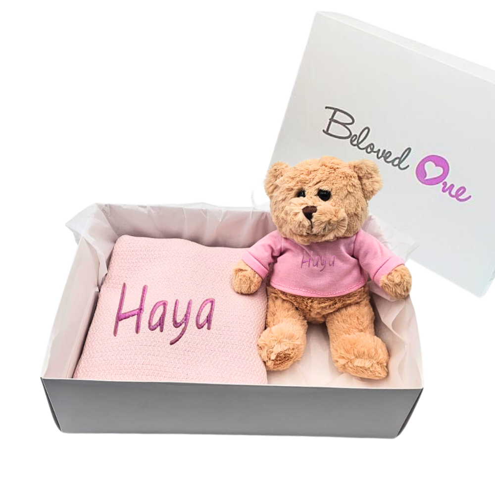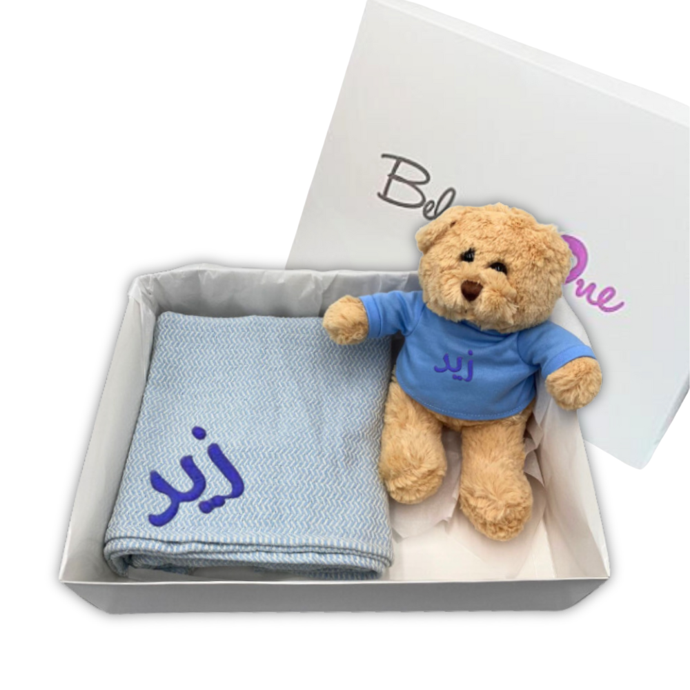 Exclusive gift set for new born babies includes our new smiley teddy bear and blanket. A unique Gift for your #BelovedOne
