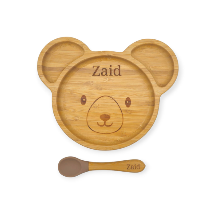 Crafted in a super cute Baby Bear shape, this eco-friendly bamboo plate and spoon set is designed to make mealtime both fun and functional for our belovedones