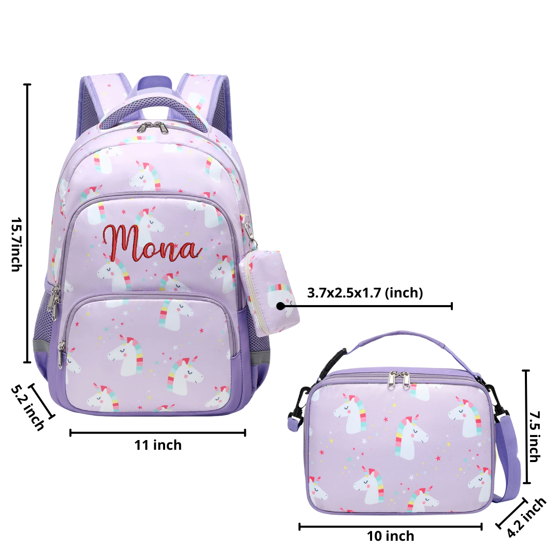 Our Unicorn Backpack Set is perfect for kids , ideal for Kindergarten and Primary School. It includes a lunch bag and a small coin pocket, making it a cute matching set for kids to go back to school.